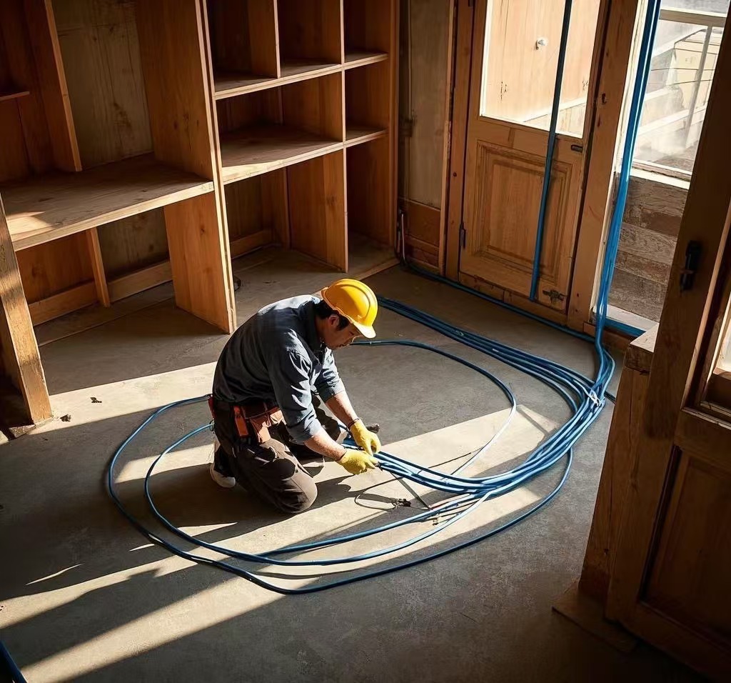 水路方面,首先要规划好用水点,像厨房水槽、卫生间的马桶、洗手盆、淋浴喷头等位置。管道材料常用PPR管,这种管材耐腐蚀、寿命长。施工时要注意水管的连接,一般采用热熔连接的方式,保证接口严密,防止漏水。同时,冷热水管要保持一定间距,通常热水管在左,冷水管在右,并且要做好打压测试,测试压力一般在0.8 - 1MPa左右,稳压10 - 30分钟,压力降不超过0.05MPa为合格,以此来检验水管的密封性。